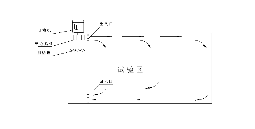 5. 空气调节柜,此柜为试验室温度调节,循环的主体,使用材料为镀锌板,本试验室的加热系统、温度循环风机及温度进出风口均安装在空气调节柜中。
